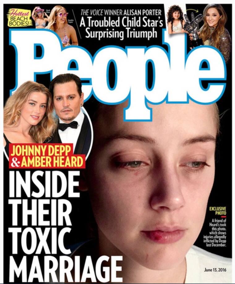 La revista People también ha publicado en su portada de una nueva imagen de la actriz con golpes en el rostro como evidencias de una supuesta agresión que sufrió por parte de Depp, en el pasado diciembre.