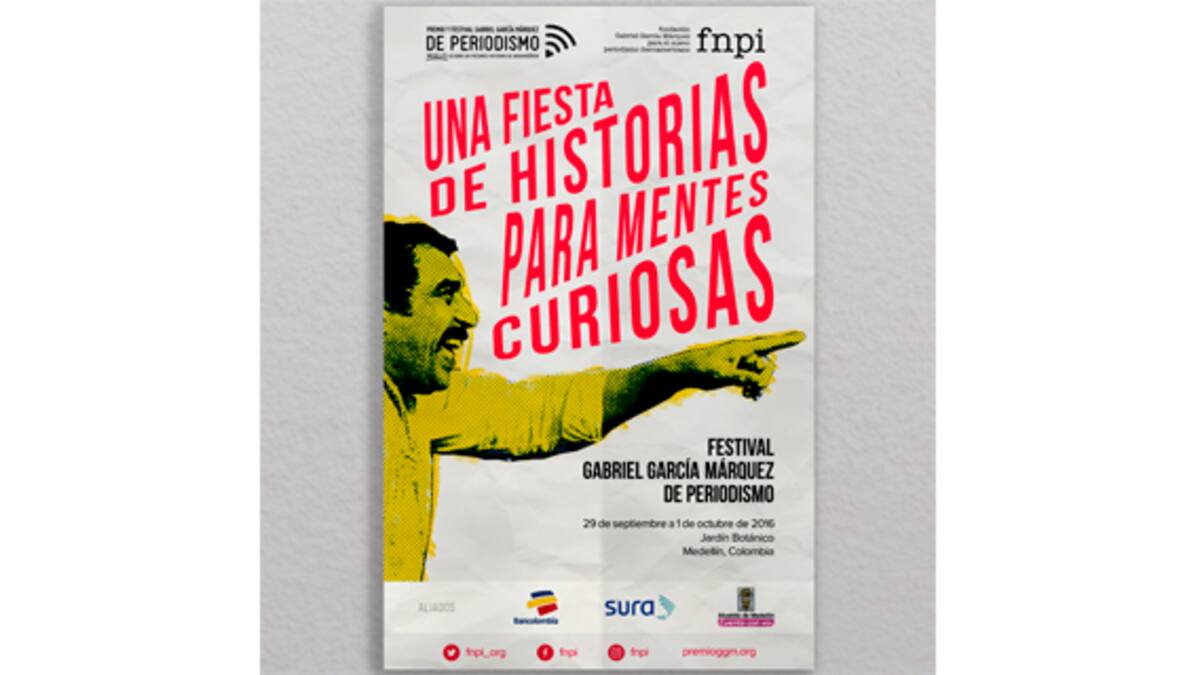 La imagen de Gabo, sonriente y alegre, apunta su dedo hacia la frase 'una fiesta de historias para mentes curiosas'. Estos son los elementos de la imagen oficial de la cuarta edición del Premio y Festival Gabriel García Márquez de Periodismo, la cita académica que también presentó ayer la convocatoria para sus talleres gratuitos.