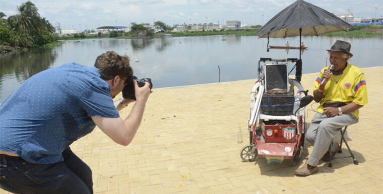 Más tarde, la sesión fotográfica continuó por los alrededores del renovado edificio de la Intendencia Fluvial, donde el fotógrafo aprovechó para atrapar en imágenes la diversidad de Barranquilla a través de sus flores, las aguas del río Magdalena y los pequeños botes encallados en sus orillas, los pintorescos establecimientos de bebidas y comida –en uno de los cuales el extranjero decidió refrescarse con una cerveza–, y su gente.