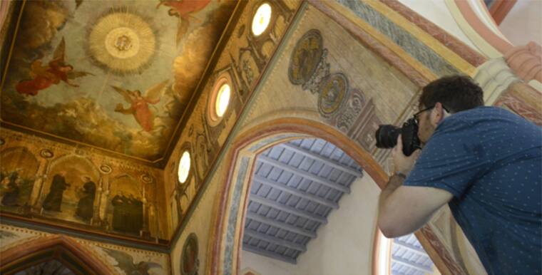 La última estación de la jornada fue la Plaza y la iglesia de San Nicolás, donde Krieger fotografió ambos lugares que fueron recuperados en 2011.