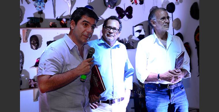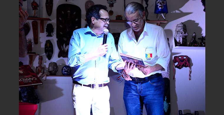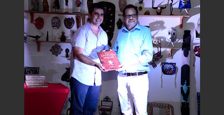 En un acto que se desarrolló este jueves en la Casa Carrerá, del endocrinólogo Joaquín Armenta, el alcalde Alejandro Char y el gobernador Eduardo Verano recibieron un ejemplar del libro Ruta Carrerá de manos del director de EL HERALDO, Marco Schwartz.
