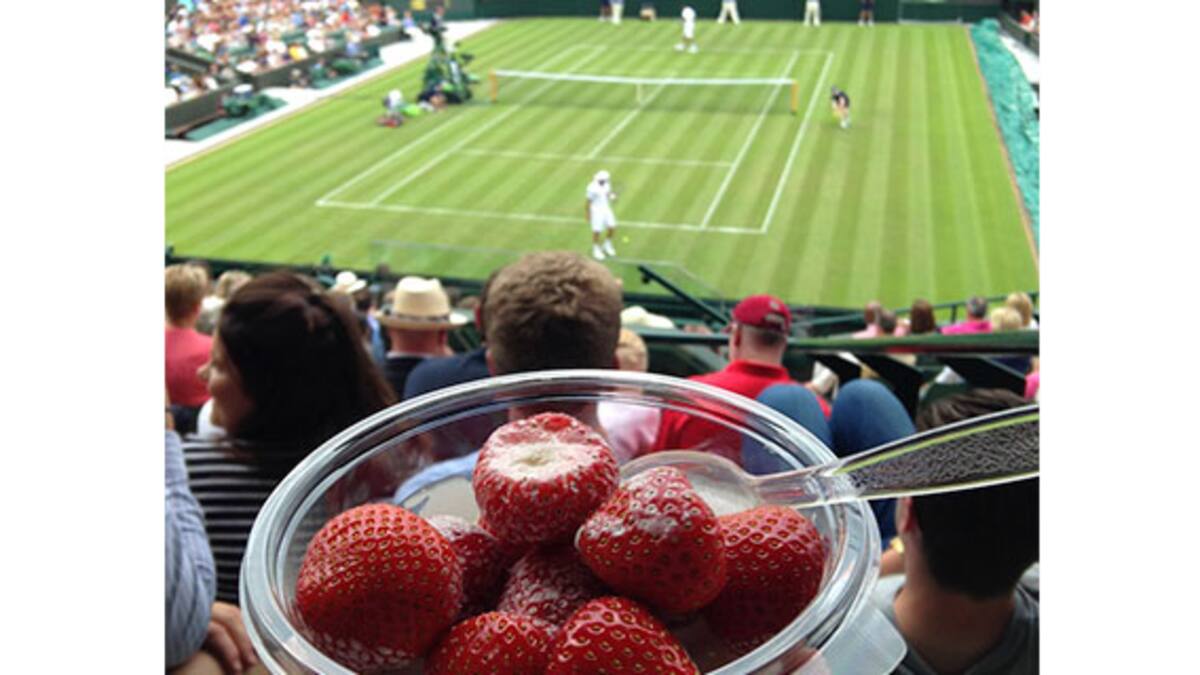 El fin de semana de las esperadas finales, los espectadores esperaban los partidos disfrutando del plato más típico de esta competición, que celebra su 130 aniversario: las fresas con nata.