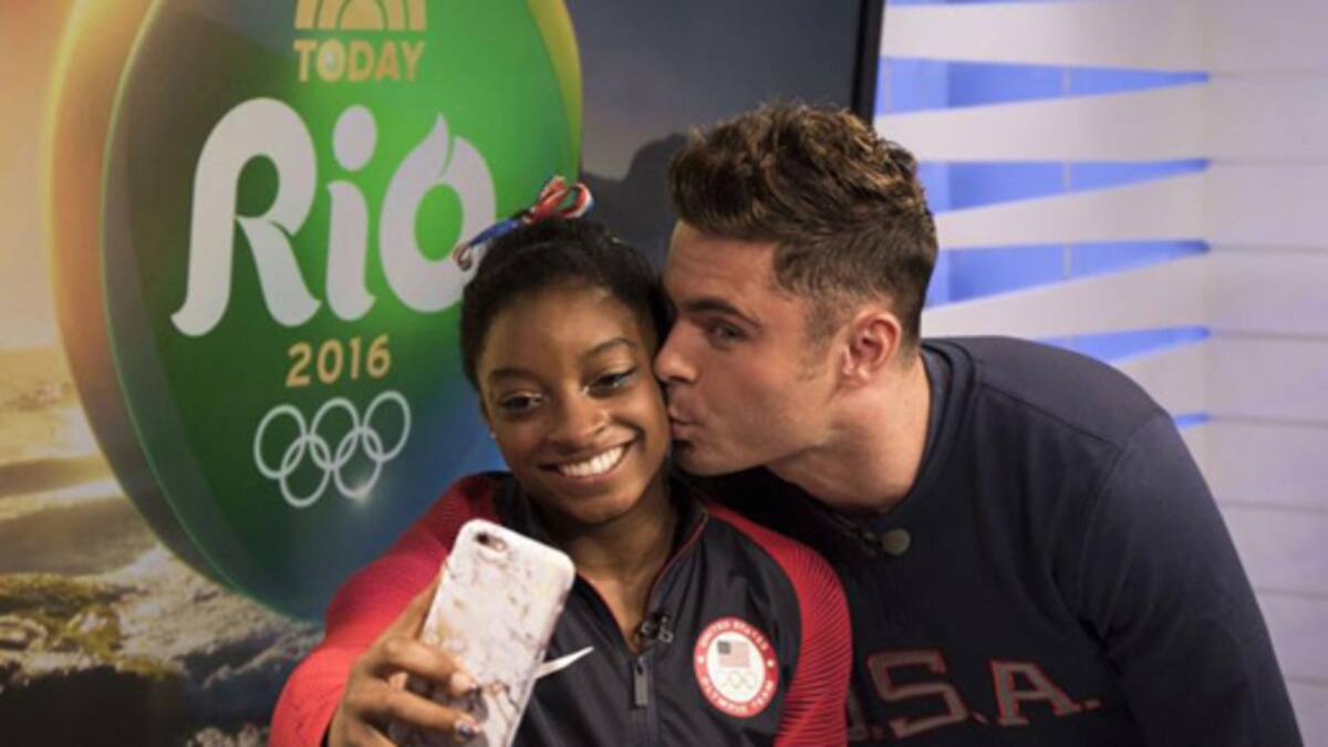 Biles confesó en una entrevista 'me gusta la cara de Zac Efron. Y tiene un buen cuerpo... Pienso que está bueno' y el acto, previo al encuentro, tuiteó mensajes de apoyo a la atleta.