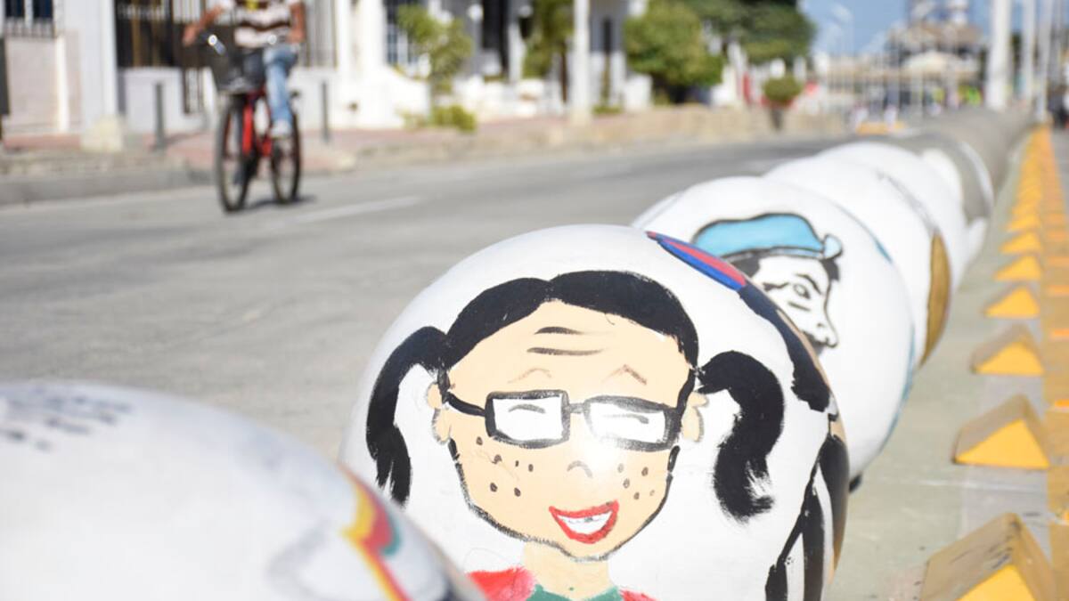 Los enormes bolardos, conocidos como las ‘butifarras’, del separador de la carrera 54, una vez más fueron lienzo de artistas. En esta ocasión no es Pac-Man, como en varios meses atrás; esta vez se trata de diferentes personajes del Chavo del Ocho, pinturas alusivas al Carnaval de Barranquilla y hasta bolas de billar.