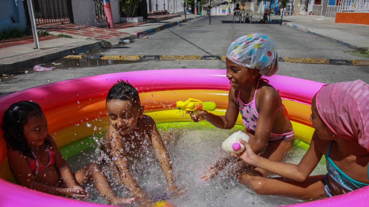 Tal como se le veía a Yirleydis Wester, sentada en el bordillo de su casa. Mientras con una mano sostenía la manguera que llenaba la piscina y, con la otra, trataba de detener las peleas entre los niños que querían aventarse al agua.