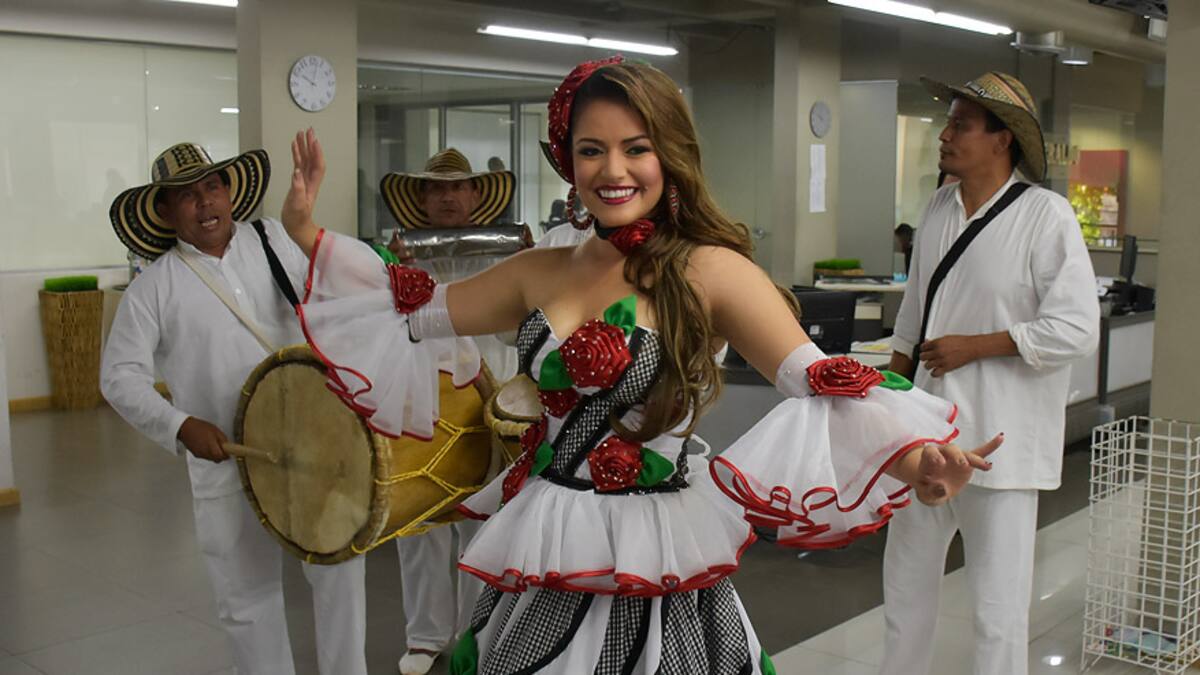 La reina del Carnaval de Palmar de Varela 2017, Auried Paola López Charris, junto a su comitiva, visitó las instalaciones de EL HERALDO para compartir los pormenores de los eventos que tendrán lugar por estos días en el municipio atlanticense. Al son de flauta e’ millo y tamboras, la reina contagió con su alegría a la sala de redacción de este medio.