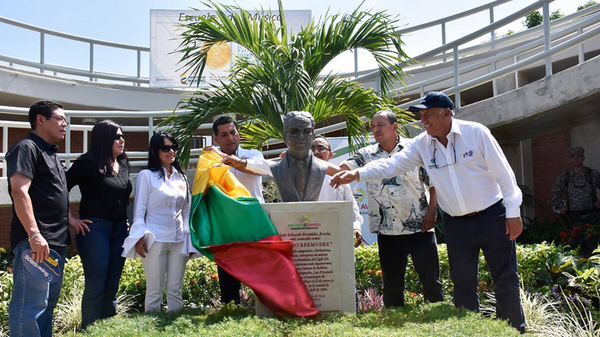 La imagen de un Lucho Bermúdez de aproximadamente 50 años, esculpida por Óscar Noriega, estará de ahora en adelante en el centro de esta escuela construida en 2012. 'Lucho Bermúdez le dio a El Carmen de Bolívar no solo la posibilidad de sentirnos orgullosos por haber nacido aquí, sino que inmortalizó ese himno que nos representa en cualquier parte del mundo. Estamos satisfechos porque ningún esfuerzo es mucho para homenajear su memoria', señaló el gobernador Dumek Turbay, durante el evento.