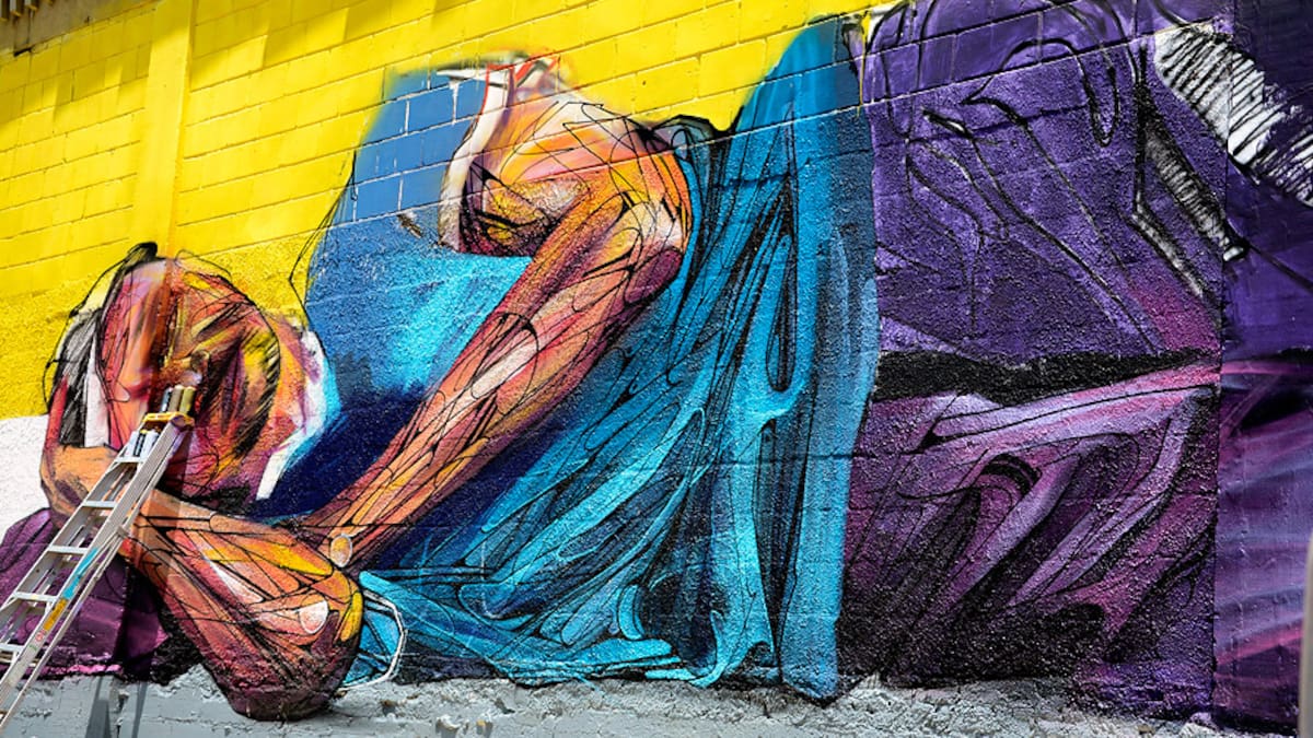 Ahora, extendido sobre un muro se encuentra la imagen de Jaime, quien con una pequeña almohada y una mirada determinante, se convierte en la muestra del arte inspirado en la calle.