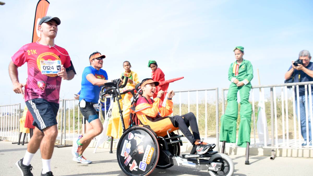 'A él le gusta mucho lo que conlleva correr maratones, la emoción de estar dentro de una carrera y ver a las otras personas que le sonríen y lo saludan. Eso hace que no sea un niño con discapacidad', recalcó Caro.