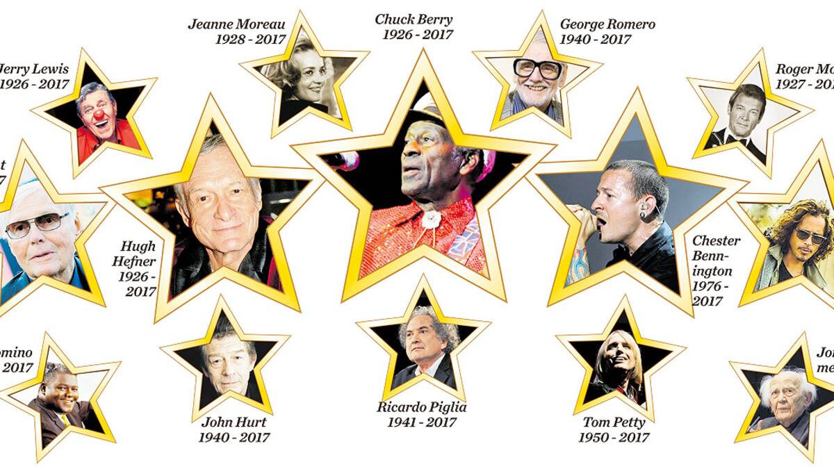 De imprescindibles pioneros como Chuck Berry a auténticos genios de la comedia como Jerry Lewis, el cine y la música vieron también cómo en 2017 fallecieron estrellas de la talla de Fats Domino, Tom Petty, Roger Moore, Jonathan Demme o Jeanne Moreau.