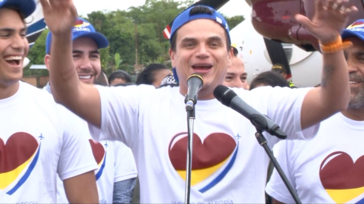En esta jornada también participó la cantante de música popular Kari Castillo, quien fue la encargada de anunciar la llegada del avión ‘trineo’. 'Nunca me imaginé que fuera así, y me siento feliz de poder aportar así sea con mi voz, un granito de arena ante tanta necesidad', explicó la artista.