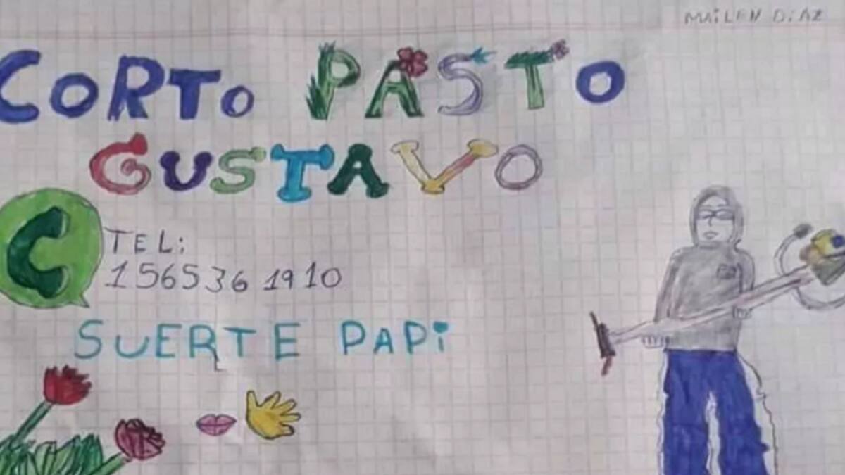 'Corto pasto. Gustavo', escribió la niña Mailén, además del teléfono para contactar al hombre. Añadiéndole: 'suerte, papi'.