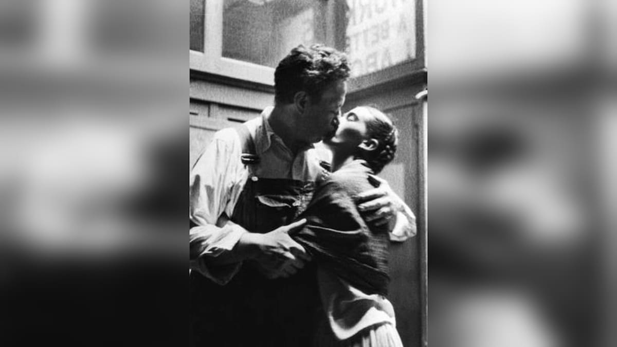 Un beso apasionado entre Frida Kahlo y Diego Rivera es una de las imágenes destacadas de la exposición inédita de 25 instantáneas tomadas por la también pintora Lucienne Bloch durante la estancia de la artista mexicana en Nueva York en 1930.