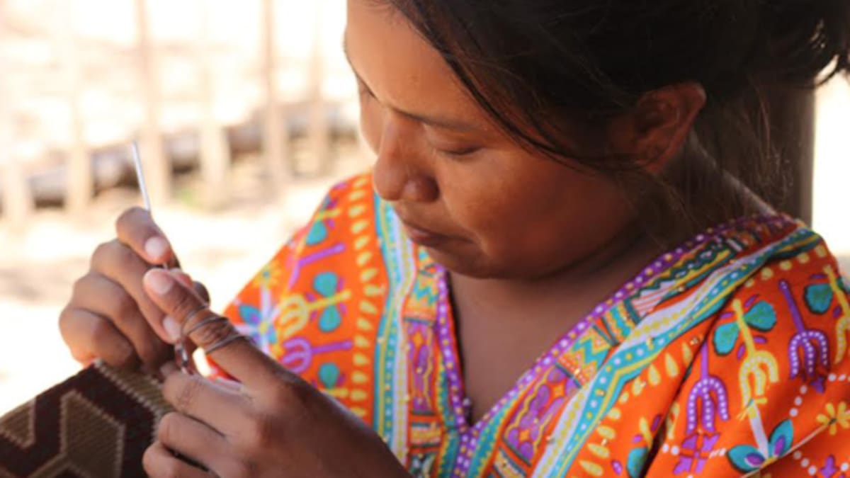 'Si naciste mujer tienes que aprender a tejer, porque mujer que no sabe tejer no es mujer', afirma Lorena Pushaina Epiayú, líder de la Asociación Areket, que reúne a 38 madres cabeza de hogar que participan en el programa Jóvenes Rurales Emprendedores y Empresas Fondo Emprender del Sena.