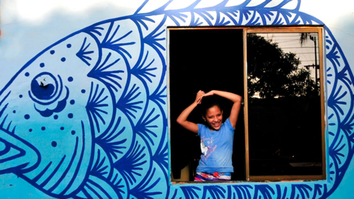Leonor Jaimes, de 62 años, miraba atenta cómo la fachada de su casa, ubicada en el barrio Barlovento, iba tomando un rostro nuevo con cada trazo del pincel del artista: sobre la capa de pintura azul, unas ondas y remolinos claros evocan el río que fluye en cercanías al barrio.