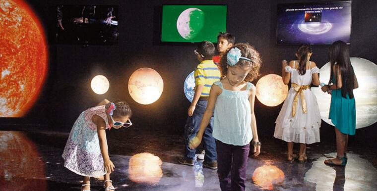 Grupo de niños disfrutando una sesión de actividades interactivas, en el Planetario de Combarranquilla.