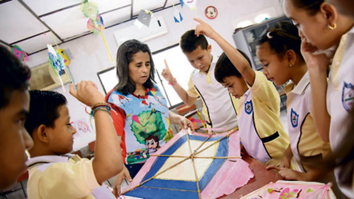 Figuras en forma de hexágonos y rectángulos tridimensionales son las herramientas con las que los más pequeños aprenden jugando en la Institución Educativa Técnica Comercial Sede Catalino Varela, ubicada en Palmar de Varela. La docente Nora Vivian Medina, quien lleva alrededor de 24 años vinculada al plantel, explica que ‘Por el rescate de los juegos tradicionales’ es una propuesta enfocada a potencializar el conocimiento de sus estudiantes 'en todas las áreas que necesitan, empleando siempre la temática de la cometa'. La clase de geometría para los estudiantes de quinto grado de primaria inició con un cuestionamiento. Las figuras que conformaban una cometa que la profesora sostenía debían ser identificadas por el grupo de pequeños estudiantes, quienes se divertían palpando las figuras en la estructura. Tomando como ejemplo esta vivencia, Medina asegura que avivar la motivación y el interés de los niños por conocer de otras asignaturas, partiendo de la dinámica con las cometas, es el objetivo de la iniciativa pedagógica. ' Creamos un ambiente estimulante para los pequeños. La motivación y el juego, que para los niños siempre es importante, crea cooperatividad entre ellos', reitera la docente.