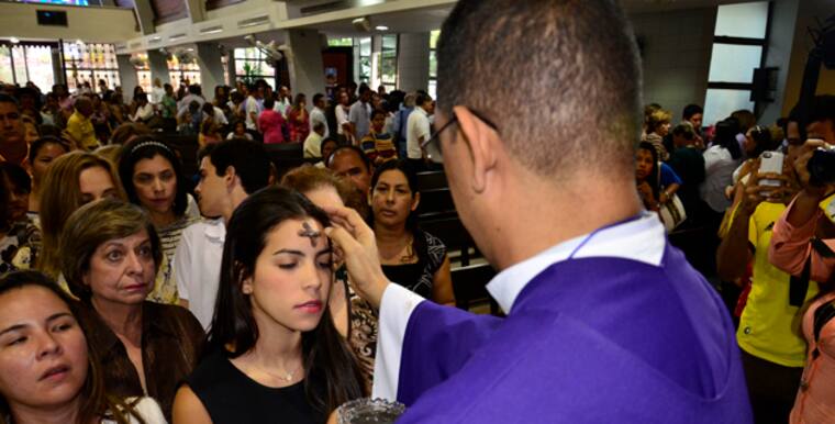 Personas de todas las edades y todos los estratos socioeconómicos se acercaron ayer durante todo el día a las distintas iglesias de Barranquilla para recibir la cruz de ceniza en la frente.