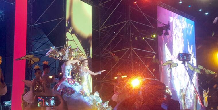 La cumbia, el mapalé, y la suave melodía de Hay amores, de Shakira, se apoderaron del escenario. Guerra entre el bien y el mal, seguido por terapia africana ha interpretado la soberana en su noche de coronación.