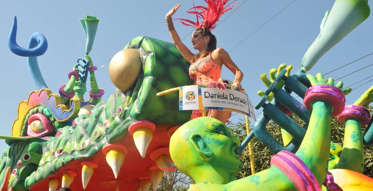 Carroza Son Antillano y Daniella Donado. (Vea la galería Las carrozas que brillaron en la Batalla de Flores).