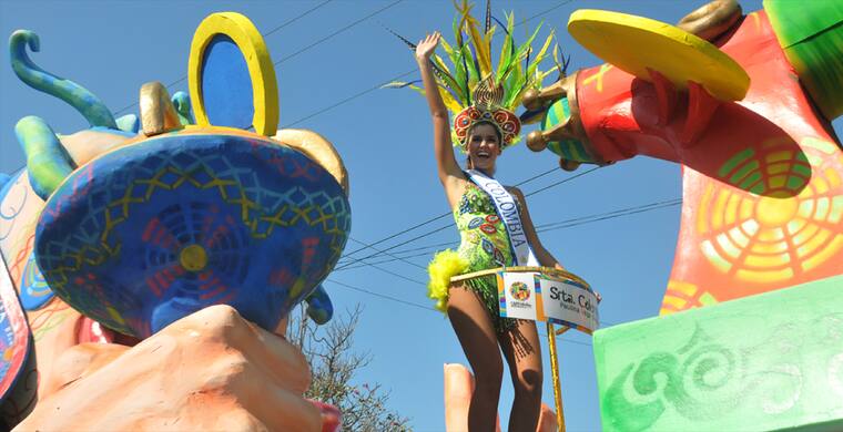 Paulina Vega Dieppa en la Batalla de Flores del Carnaval de Barranquilla 2014