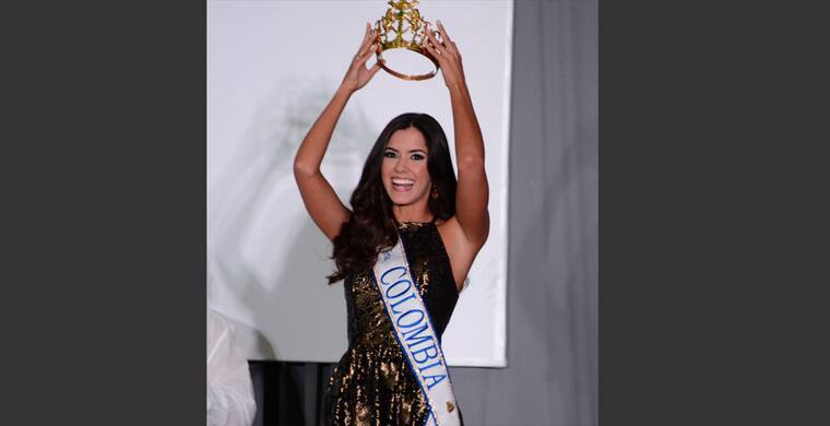 Paulina Vega Dieppa mostrando su corona de Señorita Colombia en noviembre 2013