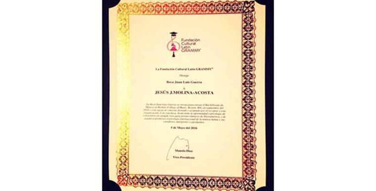 'Me siento muy privilegiado por esta oportunidad. Quiero representar bien a la Fundación Latin Grammy', expresó Molina.