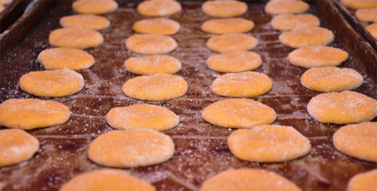Coco rallado, azúcar, saborizante, mantequilla, huevo y harina de trigo son los componentes de este bizcocho crocante. 'En estas invertimos a diario 200 libras entre todos los productos', afirmó Armando Oyola, quien también produce el aperitivo.