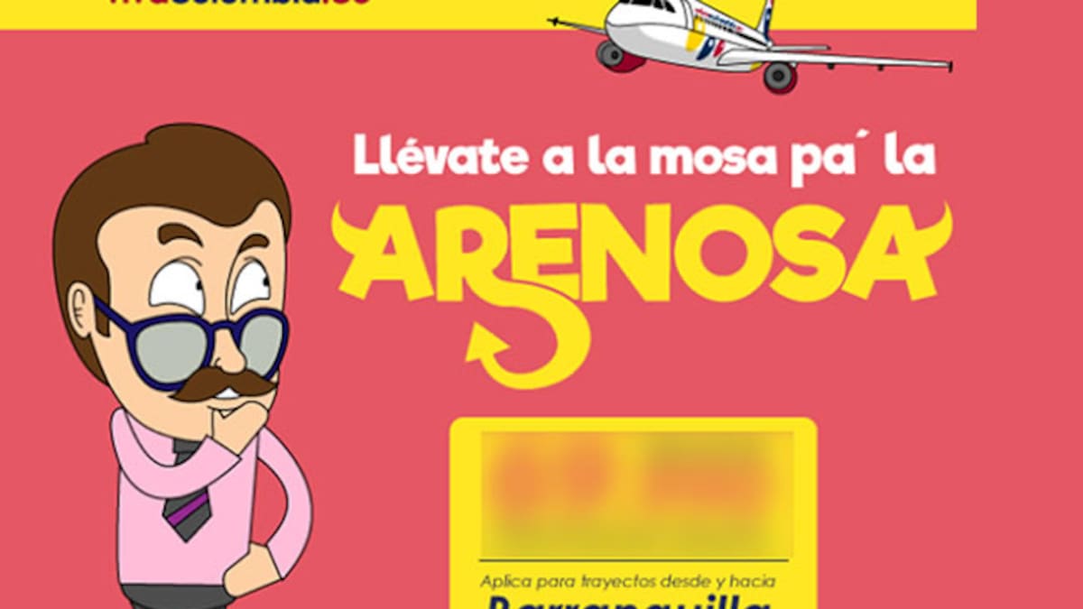 'Vámonos para Barranquilla con esta promo. Compra ya', era el otro texto acompañaba la imagen publicitaria que mostraba a un hombre de bigote y junto a este el precio del tiquete.