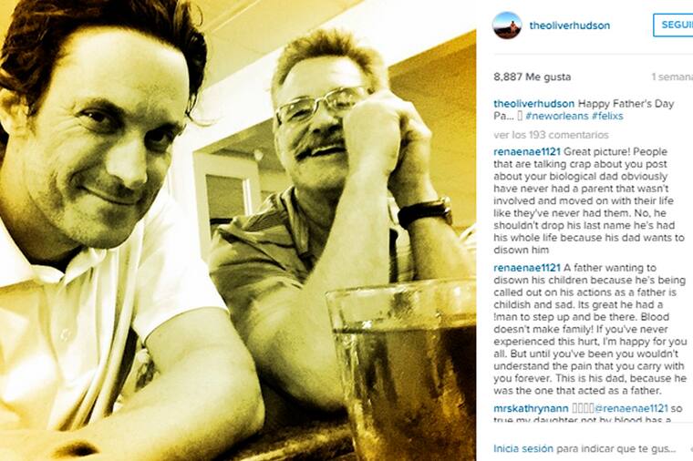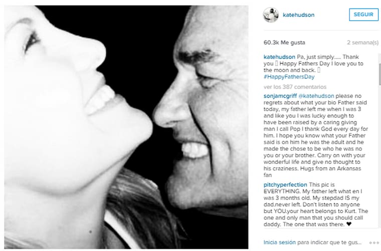 Su hijo Oliver en Instagram posteó una foto suya y de su hermana, en la que se ven los tres sonrientes y felices, con el mensaje: 'Feliz Día Abandono'. Además los dos actores, hijos de Hudson y Goldie Hawn, cada uno en su cuenta publicó una fotografía con el actor Kurt Russell en la que le dan su felicitación el día del padre y le dicen que mejor papá no pudieron tener. Russell está casado hace 31 años con la madre de Oliver y Kate y prácticamente convivió con ellos toda la vida.
