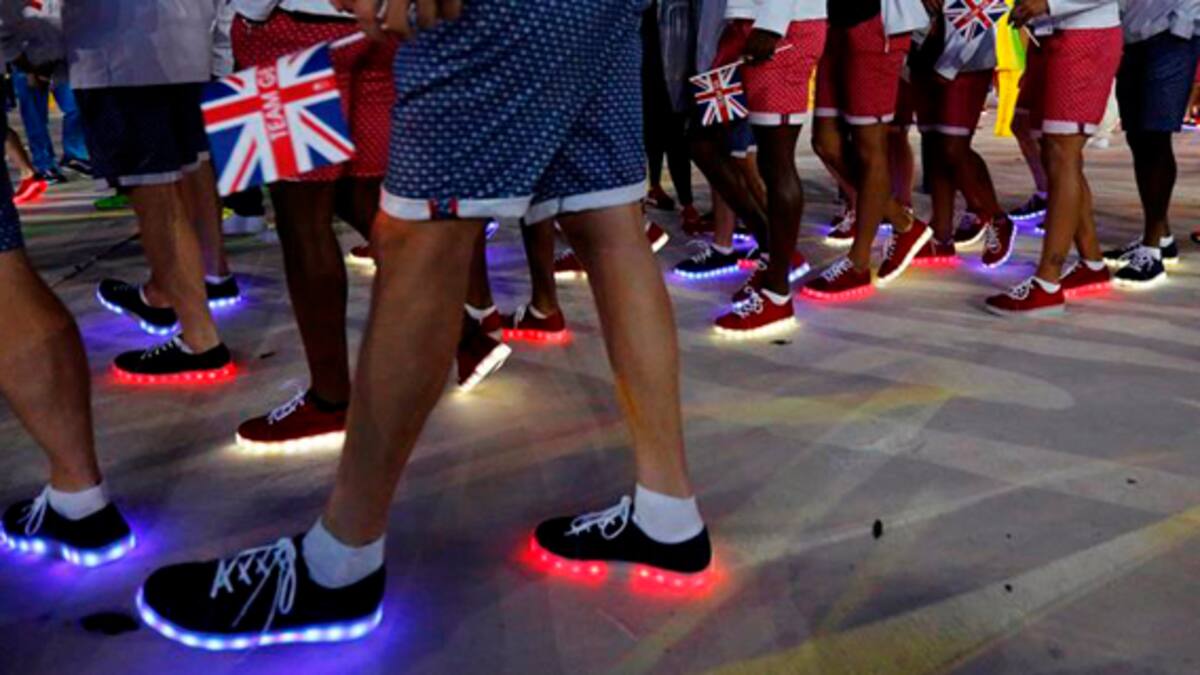 Las zapatillas con luces de led, rojas blancas y azules, de la delegación británica deslumbraron hoy al estadio Maracaná, en todos los sentidos, en el desfile de los atletas en la ceremonia de clausura de los Juegos Olímpicos.