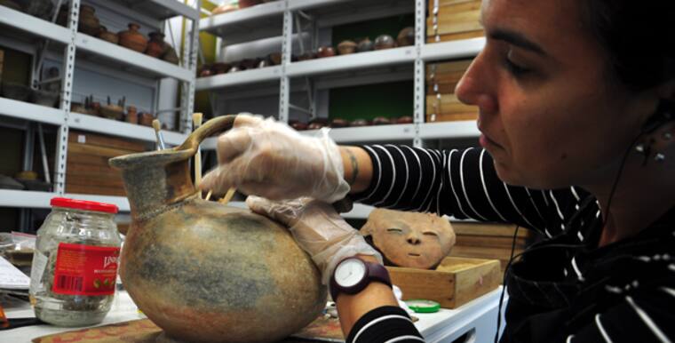 El primer paso, luego del hallazgo, es tratar de juntar las piezas del objeto y trasladarlas hasta el laboratorio, donde la especialista en restauración, Paula Figueroa (en la foto), realiza la recomposición de la misma. Este proceso puede durar hasta una semana por pieza. Actualmente, Mapuka cuenta con más de 2.000 piezas que están bajo el programa de arqueología preventiva.