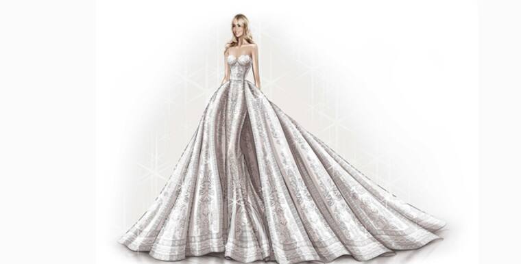 El traje de corte barroco fue elaborado en dos continentes, en los talleres de París y Beirut de Murad.