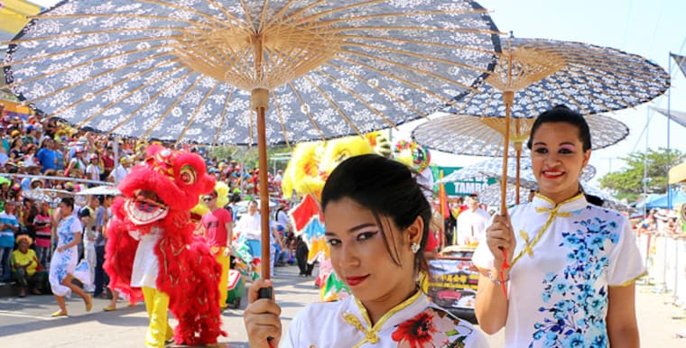 'Mira que sí son chinos', decía una espectadora a otra desde la barrera que la separaba del desfile. 'Mírales los ojos, ahí se ve que son de verdad', insistía la mujer que señalaba a los hombres vestidos de trajes rojos con apliques dorados, típicos de las celebraciones del país asiático. Junto a ellos desfilaban mujeres con kimonos blancos, estampados con flores, que portaban en sus manos delicadas sombrillas chinas. Una escena exótica entre la amalgama de expresiones culturales que son autóctonas del Carnaval de Barranquilla.