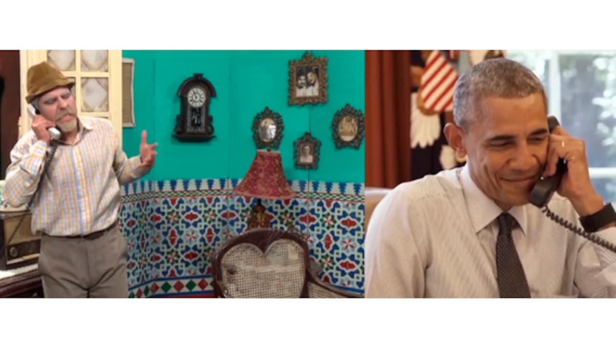 Pánfilo le pregunta si es el verdadero Obama, y a su vez el mandatario indaga si se trata del comediante en persona, y a partir de allí comienza un breve intercambio cómico en el cual el presidente estadounidense utiliza la expresión cubana 'qué bolá' y pide ser buscado en un 'almendrón', como los isleños le dicen a los automóviles estadounidenses clásicos que circulan por sus calles.