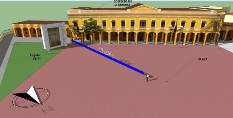El plano superior muestra la ubicación actual y el punto exacto en el que se está construyendo la nueva estructura, apreciada en detalle en la imagen inferior. La instalación estará más cercana a la Biblioteca Piloto del Caribe. La obra, además de la estructura de soporte, tendrá una protección contra la lluvia; también una muralla de árboles se interpondrá al impacto del viento y evitará que los contaminantes de la Vía 40 se depositen sobre el mural. La zona del traslado fue definida después de un estudio del impacto de sol y sombra, que dirigió el arquitecto y acuarelista Roberto Angulo.