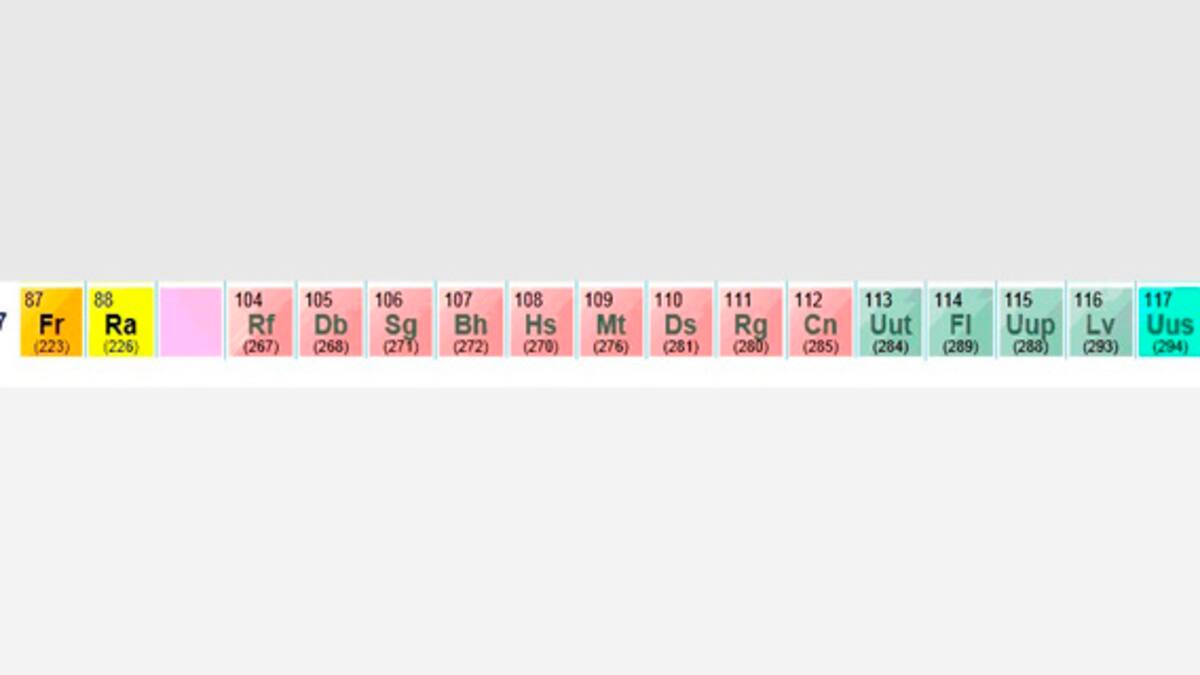 Los elementos que componen esta fila existen solo por cuestión de segundos antes de desintegrarse en otros elementos. Y es esta una de las características con que cuentan los nuevos elementos añadidos en la tabla periódica.