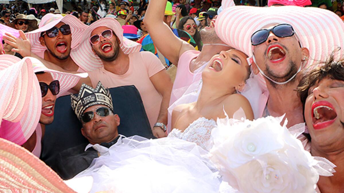 Vestida de novia, rodeada de 7 pajecitas, que eran en realidad hombres vestidos de mujer y una comitiva de alrededor de cien personas, Marcela vociferaba en su papel de novia plantada en el altar. 'No puedo cobrar la herencia, 25 pagadiarios me dejó', decía la soberana en su interpretación, que mezcló la tristeza y la rabia por la pérdida de su 'novio de 7 años' que la dejó 'metida' antes de la ceremonia nupcial.