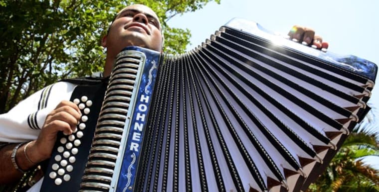 En un vallenato la herencia africana resuena con los golpes firmes y rítmicos de una caja; también la guacharaca integra sus sonidos como parte de la tradición indígena y el acordeón, producto de la cultura musical europea, se acopla y define los cuatro aires tradicionales por el marcante de sus bajos. El acordeón tomó el lugar de los instrumentos de viento de origen indígena, como el carrizo y la gaita, y se consolidó como el elemento líder de esta música.