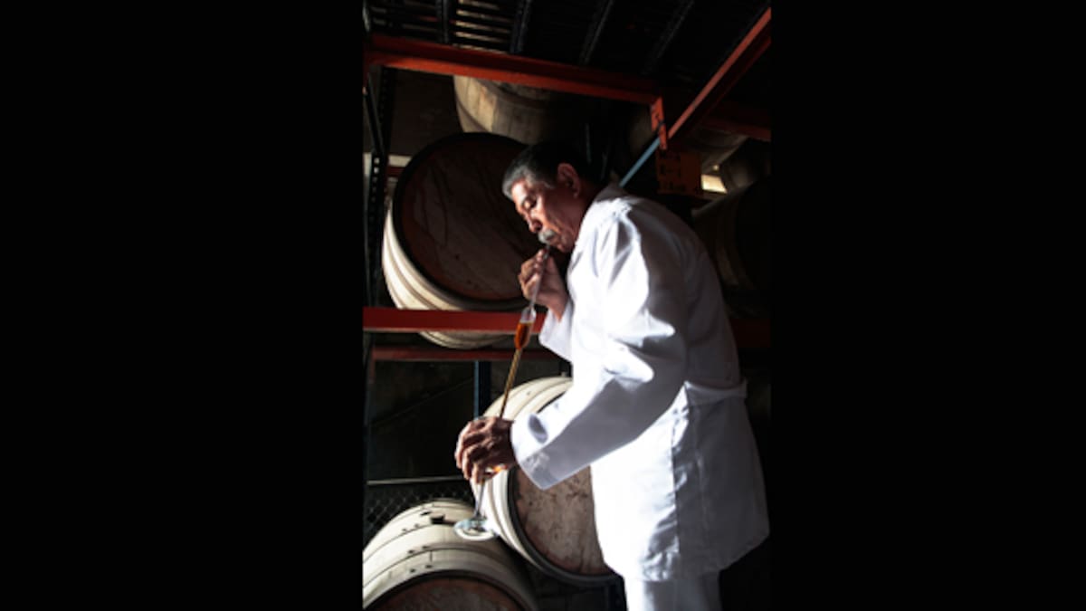 En el cálido interior de estas reservas de licor, también conocidas como soleras, se mezclan los aromas de la madera de los barriles y el dulce de la melaza de caña que se impregna en la ropa de los visitantes.