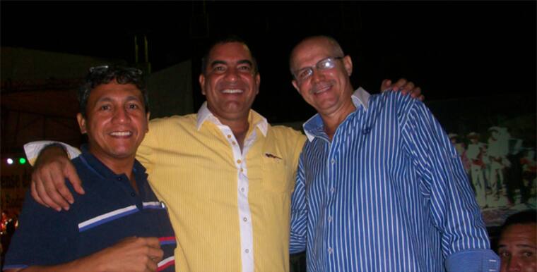 Eugenio Bosio (Derecha) con el cantante William Quiñónes (Izquierda), y el alcalde de Arjona Orlando Cogollo.