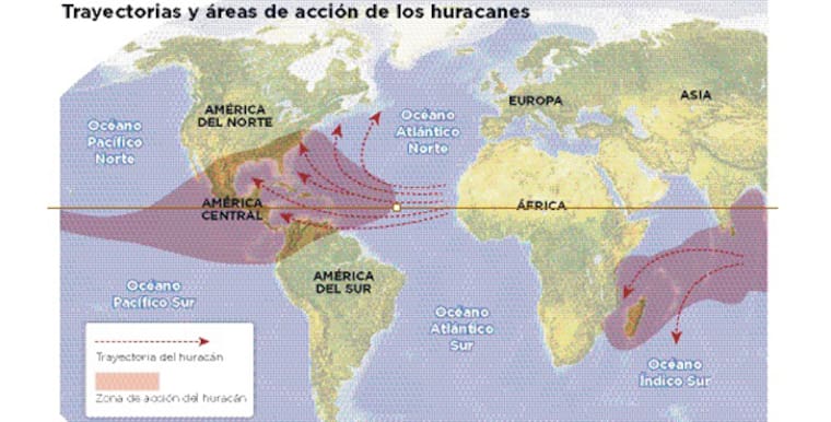 Imagine el huracán como un trompo. El agua es la superficie donde se mueve. El viento es la cuerda que determina en qué dirección rota. El calor es la fuerza que lo hace girar.