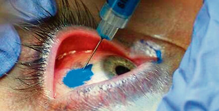 Procedimiento de un tatuaje en la esclerótica del ojo.