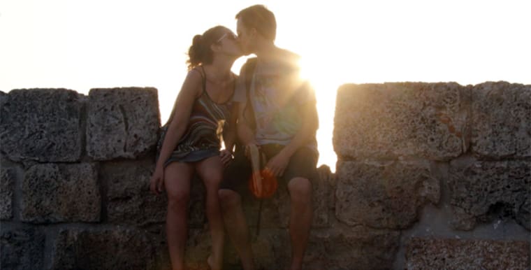 Una pareja se da un beso sobre las murallas del Centro Histórico de Cartagena de Indias.
