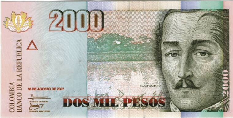 2005: Billete de $2.000 con Francisco de Paula Santander