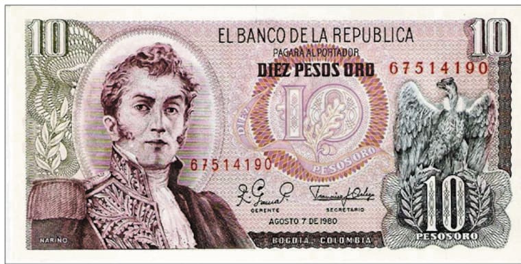 1980: Billete de $10 con Antonio Nariño