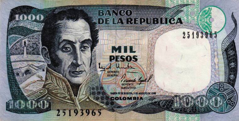 •En 1997 salió de circulación el billete de $1000 pesos (azul con rostro de Simón Bolívar) para ser reemplazado por la moneda de igual denominación. Luego volvió la versión del billete de $1.000 en 2006, con Jorge Eliécer Gaitán como figura.