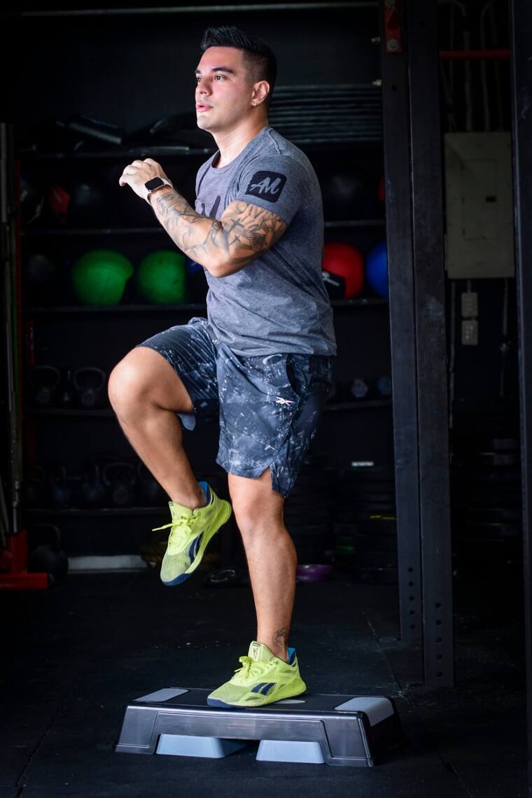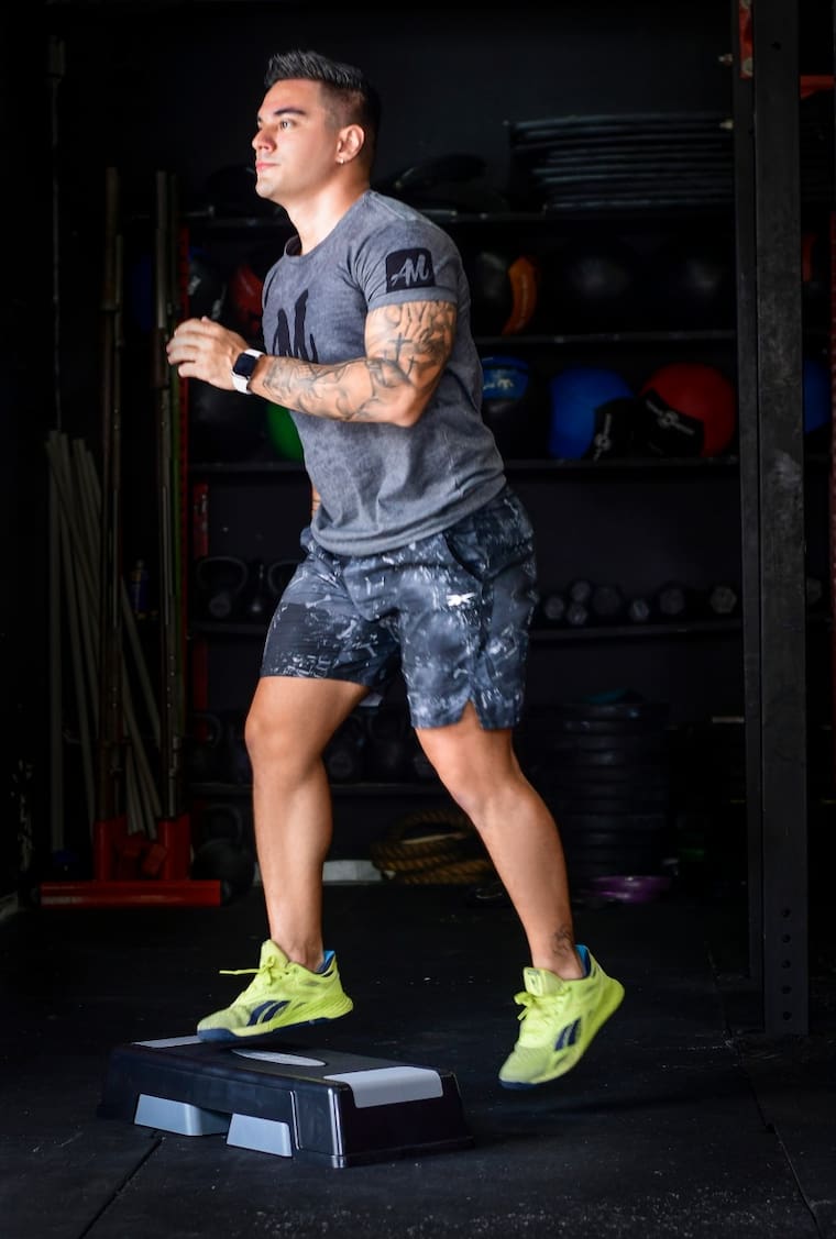 Quema la grasa corporal y tonifica tus músculos con esta rutina de ejercicios sobre un ‘step’.