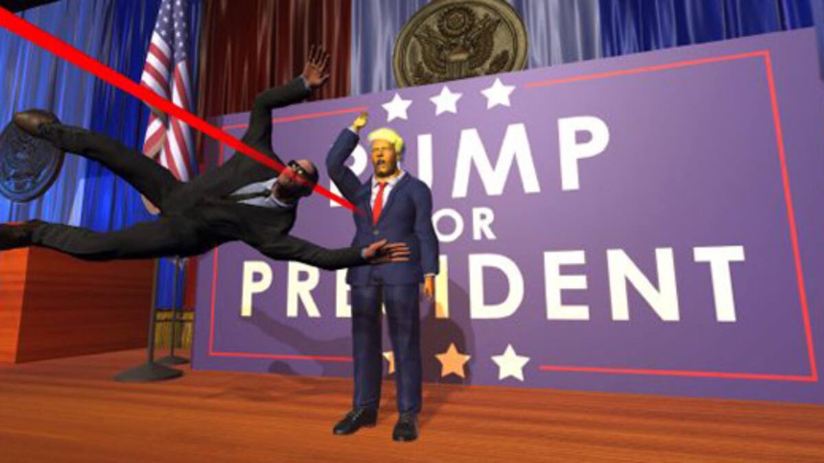 Así, deberemos salvar la vida del Donald Trump en la piel de Dick 'Rock-Hard' Johnson interponiéndonos en la trayectoria de las balas que varios francotiradores disparan contra el candidato en mitad de todo tipo de eventos de campaña.