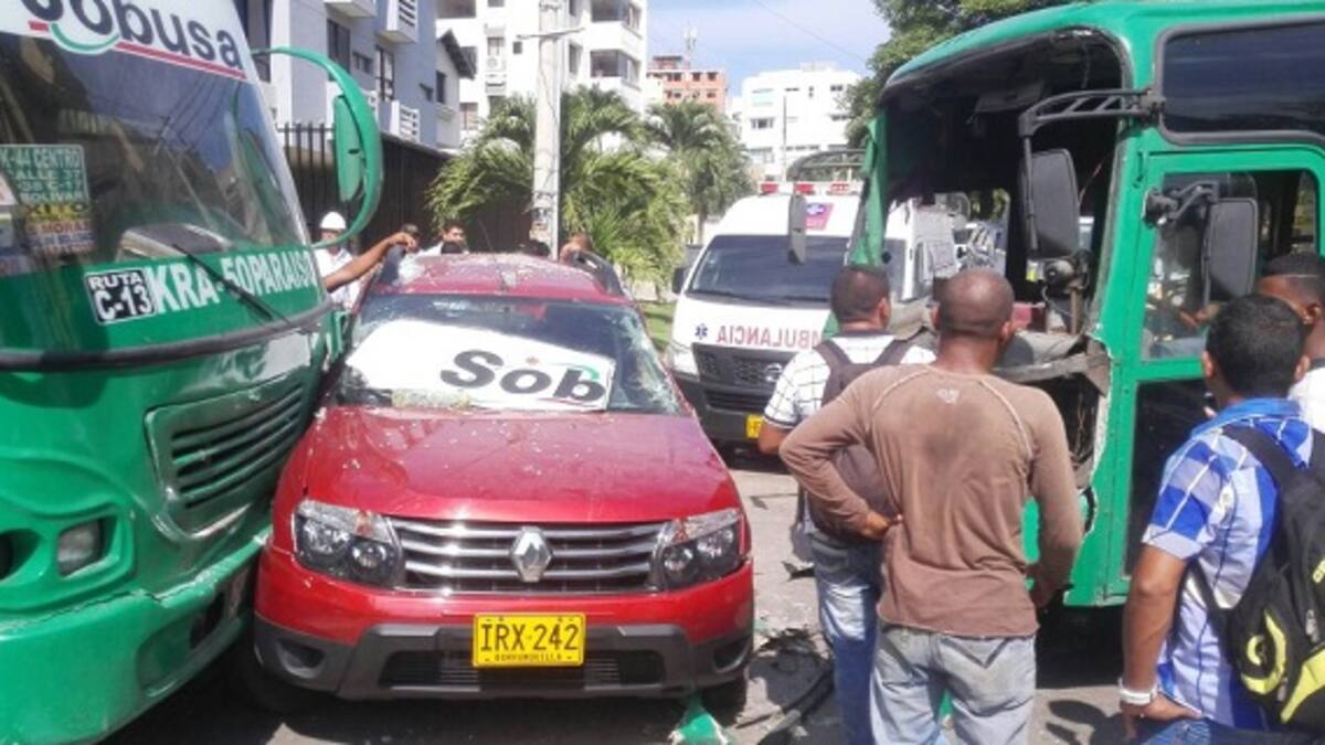 De acuerdo con Eddye Yunez, transeúnte del sector, el accidente ocurrió cuando dos buses de servicio público 'encerraron' a una camioneta Renault Duster, de placas IRX 242, luego de 'volarse la escuadra' de la vía.